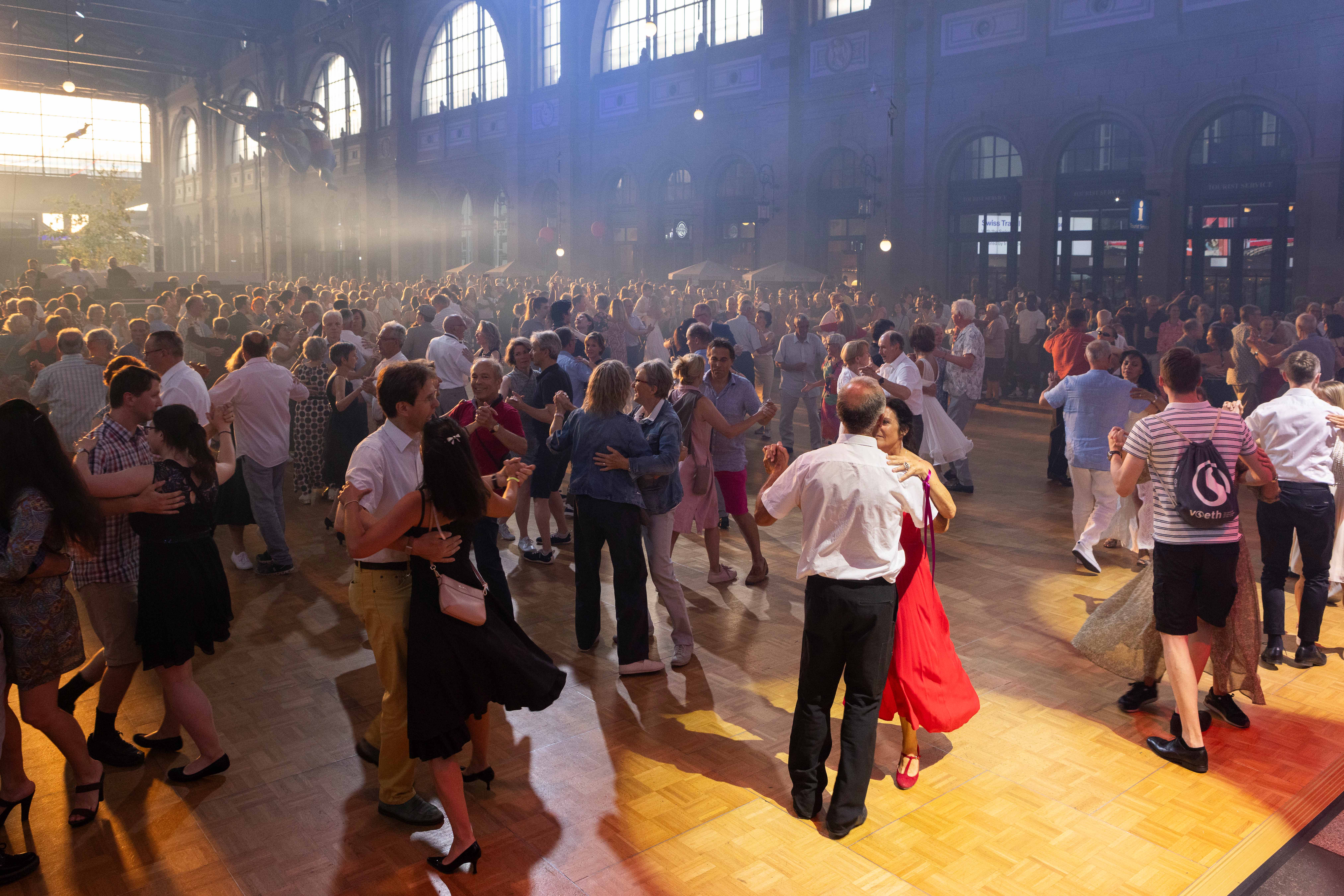 Die grosse Halle des Zürcher Hauptbahnhofs (HB) verwandelt sich am Samstag, 22. Juni, in einen grossen Ballsaal. Das Kulturprozent der Migros Zürich lädt von 20.00 bis 2.00 Uhr morgens zu seinem jährlichen Sommernachtsball. Seien es Neulinge oder Profis, mit Begleitung oder ohne: Eingeladen sind alle die Freude am Tanzen haben. Der Eintritt ist kostenlos, eine Anmeldung unnötig. Entsprechend dem diesjährigen Motto «Unser Ball für alle!» gibt es auch keinen Dresscode.
