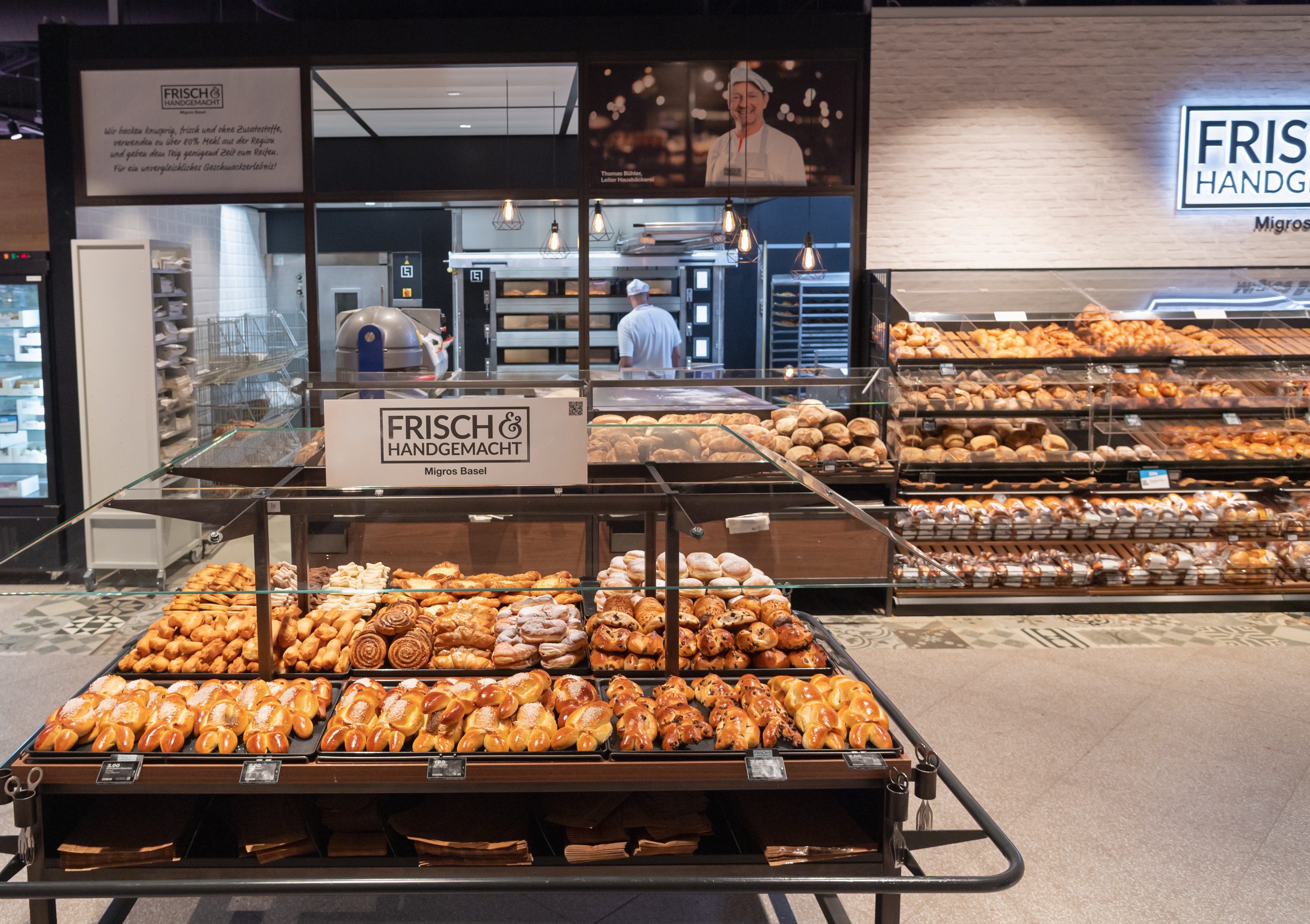 Die Migros Bubendorf wurde am 23. August 2007 nach einjähriger Bauzeit eröffnet. Die Genossenschaft hat damals 22 Millionen in den Neubau investiert. Auch nach 17 Jahren ist die Migros Bubendorf noch immer ein wichtiger Standort für die Region. Daher hat die Migros Basel die Filiale während sieben Monaten etappenweise umgebaut und insgesamt über sieben Millionen Franken investiert. Mit einem Provisorium konnte die Filiale durch die gesamte Umbauphase für die Kundschaft geöffnet bleiben. Die Kundinnen und Kunden profitieren neu von einem moderneren Einkauferlebnis und einem vergrösserten Angebot. So wurde die Hausbäckerei offener gestaltet, wodurch die Kundschaft nun das Handwerk der Mitarbeitenden, die täglich ein breites Sortiment an Brot und Feinbackwaren frisch zubereiten, noch besser erleben können. Auch der beliebte Bubendorfer Buurezopf ist wieder zurück im Sortiment. Weiter konnten die Bedientheke der Metzgerei und die Käsetheke im Zuge des Umbaus modernisiert werden. Bei der Käsetheke werden regionale oder Bio-Halbhart- und Hartkäsesorten im Humidor weitergereift. Das Fischsortiment trumpft auf mit einer Vielzahl ganzer und filetierter Fische sowie frisch vor Ort und nach Wunsch zubereiteten Spezialitäten und einem Smoker, in dem Lachs in verschiedenen Variationen geräuchert wird. Ebenfalls selbst hergestellt und auch vor Ort gebacken wird der Fleischkäse, welcher an der benachbarten Fleischtheke frisch zubereitet wird. An allen Theken werden die Kundinnen und Kunden weiterhin durch die Mitarbeitenden kompetent beraten.